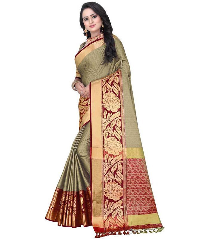 Embellished Dharmavaram Jacquard, Art Silk Saree (Grey)