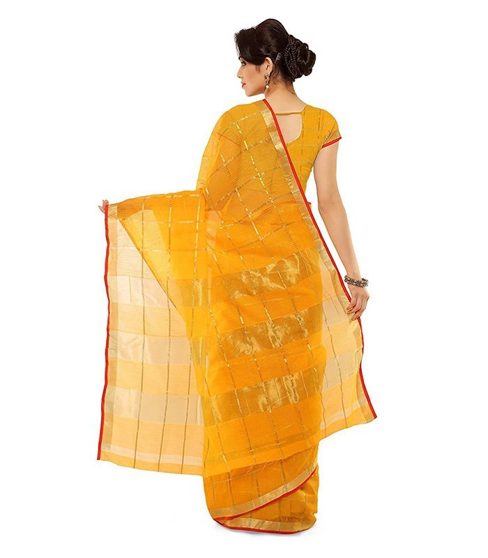 Woven, Striped, Self Design Kota Doria Cotton Silk Saree (Yellow)